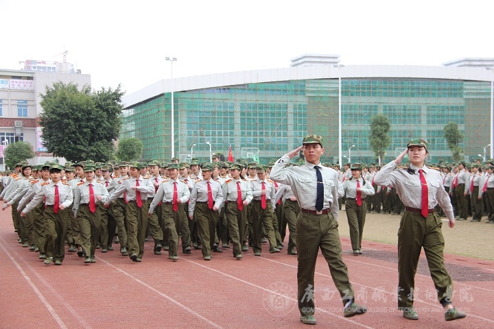 2015年12月15日上午9時30分,我院在校本部田徑運(yùn)動場隆重舉辦2015年軍事訓(xùn)練總結(jié)大會。學(xué)院黨委書記覃武云,武警廣西總隊直屬支隊政治處副主任楊和奎等領(lǐng)導(dǎo)、教務(wù)科研處、后勤管理處、學(xué)院黨委學(xué)工部相關(guān)負(fù)責(zé)人、來自武警廣西總隊直屬支隊的軍訓(xùn)教官、2015級新生班級各班班主任和2015級全體新生等參加了此次大會,大會由付光部長主持。