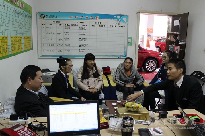 座談中,玉林市得利汽車銷售服務(wù)有限公司財(cái)務(wù)總監(jiān)黃總監(jiān)對(duì)我院財(cái)信系杜嬋同學(xué)近三個(gè)月所取得的工作業(yè)績(jī)和已掌握的專業(yè)技能給予了充分的肯定,并希望雙方能在今后進(jìn)一步加強(qiáng)校企合作。同時(shí),黃總監(jiān)還強(qiáng)調(diào)了學(xué)生提升為人處事、善于不斷總結(jié)與思考等軟實(shí)力的重要性,希望實(shí)習(xí)生們要有良好的工作心態(tài),努力從基層鍛煉,不斷提高自身專業(yè)技能和競(jìng)爭(zhēng)力,樹立良好的職業(yè)規(guī)劃,為今后不斷提升奠定夯實(shí)的基礎(chǔ)。