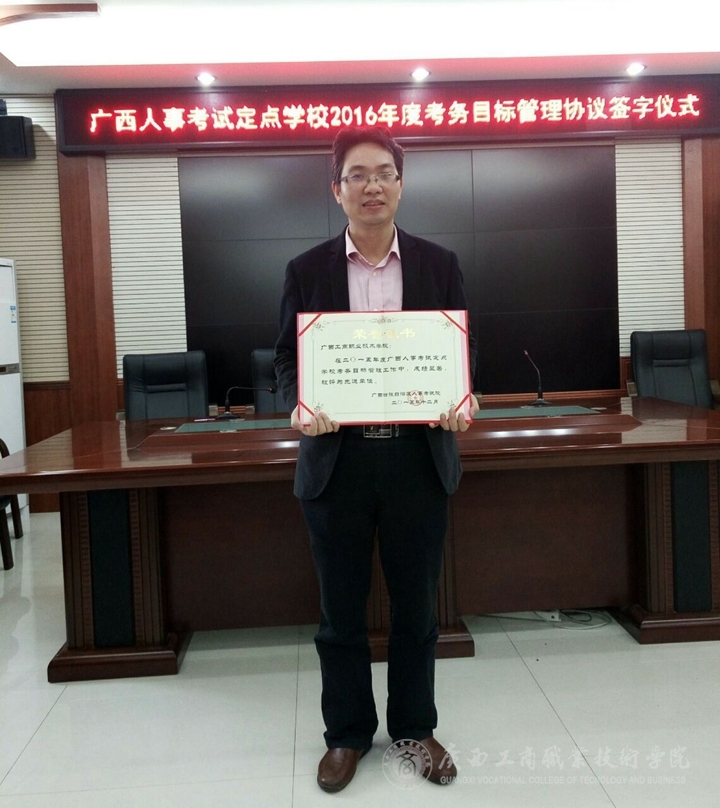 12月24日,從廣西區(qū)人事考試院傳來喜訊,我院在2015年度全區(qū)人事考試定點(diǎn)學(xué)??紕?wù)目標(biāo)管理工作中,成績突出,被評(píng)為先進(jìn)工作單位。