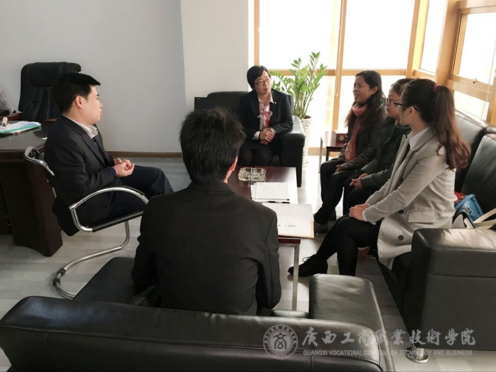 為了深化校企合作,加強(qiáng)我校學(xué)生頂崗實習(xí)過程管理,掌握學(xué)生頂崗實習(xí)狀況及企業(yè)對人才的需求。2015年12月22日上午,由教務(wù)科研處副處長謝偉燕老師領(lǐng)隊,經(jīng)管系就學(xué)副主任唐燕雯老師、經(jīng)管系就業(yè)秘書何麗瑩老師、財信系就業(yè)秘書莫凱淳老師等一行4人走訪了廣州多迪網(wǎng)絡(luò)科技有限公司南寧分公司、泰康人壽保險股份有限公司南寧分支公司2家企業(yè),檢查看望了學(xué)院2013級11名正在企業(yè)頂崗實習(xí)的學(xué)生。