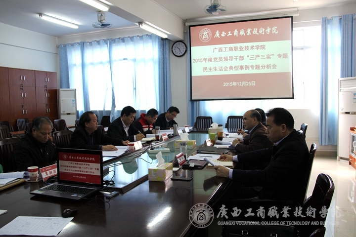 2015 年 12月25日上午,學院領(lǐng)導班子在校本部教學樓一樓2109會議室召開2015年黨員領(lǐng)導干部“三嚴三實”專題民主生活會典型事例專題分析會,學院領(lǐng)導班子成員出席會議,黨委委員中的部門領(lǐng)導列席會議。