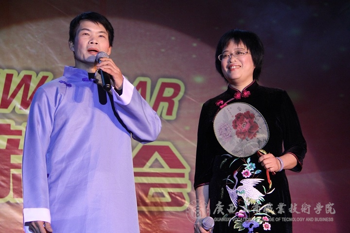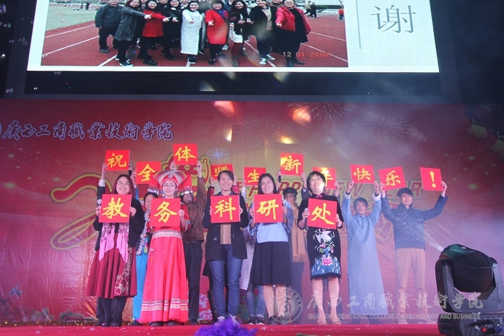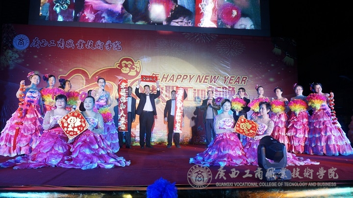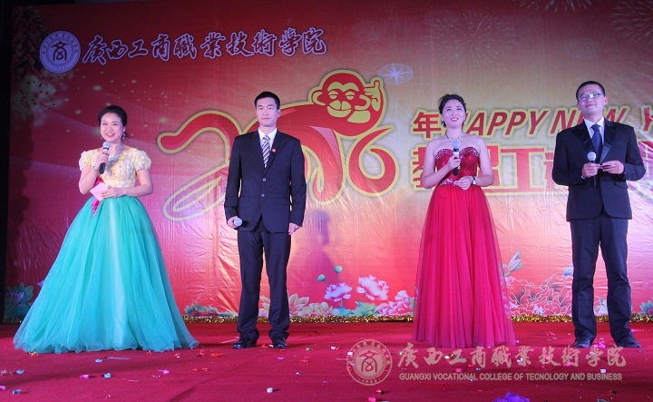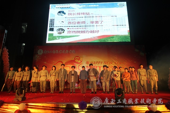 現(xiàn)場(chǎng)華燈璀璨,熱鬧非凡。晚會(huì)伊始,主持人向大家介紹了到場(chǎng)的學(xué)院領(lǐng)導(dǎo)、嘉賓及教師等,接著由黨委書記覃武云做新年賀辭,他代表學(xué)院黨委向全體師生致以誠(chéng)摯的問(wèn)候和新年美好祝福。