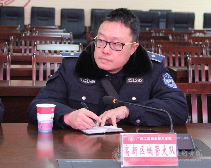學院后勤管理處處長陳寧春對學院周邊治安管理相關部門領導表示歡迎,并感謝大家對學院工作的支持與幫助。接著,陳寧春處長向大家匯報了學院2015年以來的安全狀況。