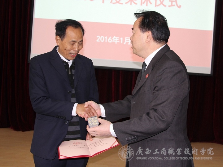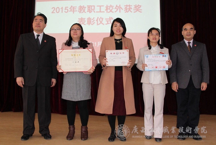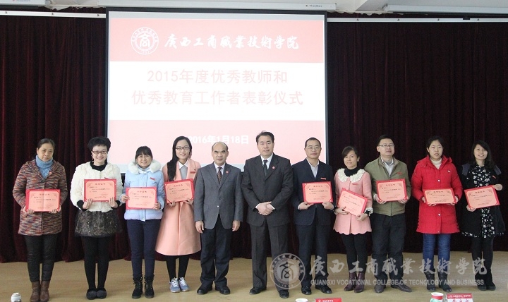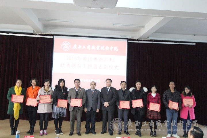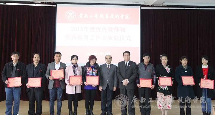 隨后,由學(xué)院副院長(zhǎng)李仕欽作2015年度優(yōu)秀教師及工作者表彰決定報(bào)告。學(xué)院黨委書記覃武云和學(xué)院院長(zhǎng)為受表彰的教師及教育工作者頒發(fā)證書。