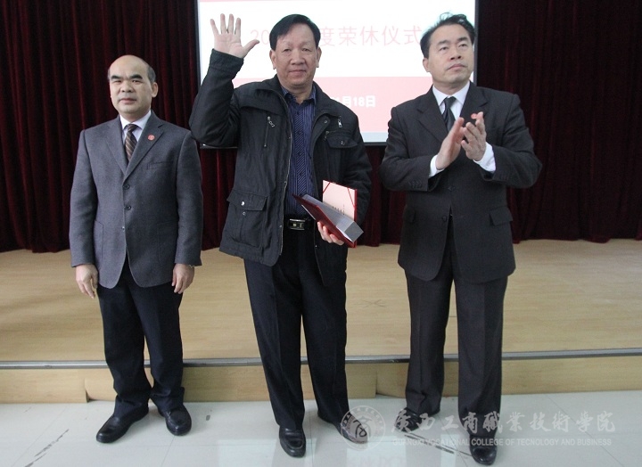 2015年度榮休儀式由黨委副書記蒙啟成主持。儀式正式開始前,與會(huì)人員集體觀看了由學(xué)院黨委宣傳部新聞中心制作的7位退休教師的榮休榜短片,回顧了老教師們的光輝歲月。學(xué)院黨委書記覃武云和學(xué)院院長(zhǎng)陳杰為退休教職工頒發(fā)了證書以及退休紀(jì)念品,并合影留念。接著,陳杰院長(zhǎng)發(fā)言講話,他向大家說(shuō)明了榮休儀式舉辦的意義,介紹了2015年度退休教師在我院的入職及工作情況,并向老教師們?yōu)閷W(xué)院默默無(wú)聞、孜孜不倦的付出表示衷心的感謝。