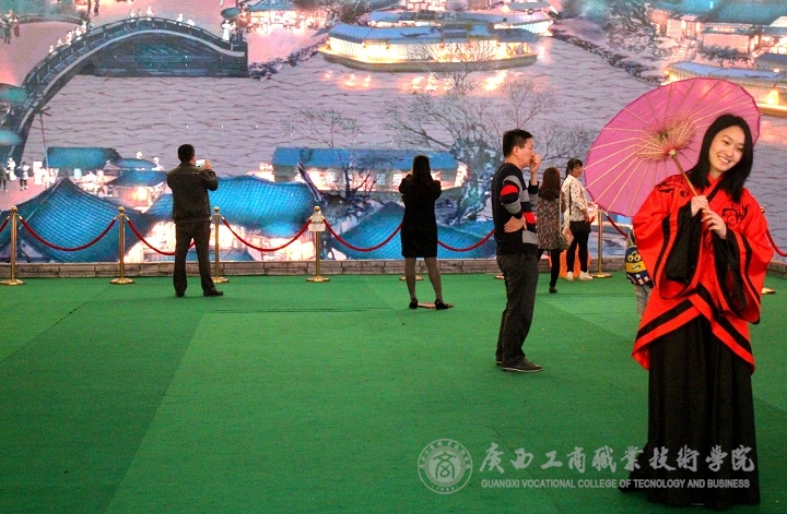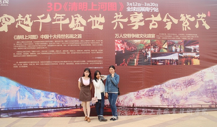 2016年3月20日上午,為了感受中國古典藝術(shù)氣息的熏陶,為了豐富同學(xué)們的課余生活,我院新聞中心的同學(xué)們自發(fā)組織穿越大半個南寧去到了南寧市五象新區(qū)萬達(dá)茂觀看“3D版清明上河圖”,讓我們真真切切的感受到了中國國寶級名畫、十大傳世名畫之首的《清明上河圖》3D巨幅長卷所帶來的震撼。
