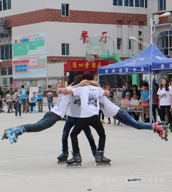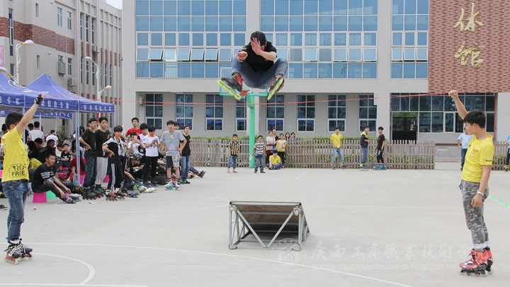 近日,學(xué)院酷6輪滑社在院本部籃球場舉辦社團(tuán)兩周年慶。全區(qū)眾多高校輪滑社團(tuán)到校祝賀并現(xiàn)場帶來精彩表演。