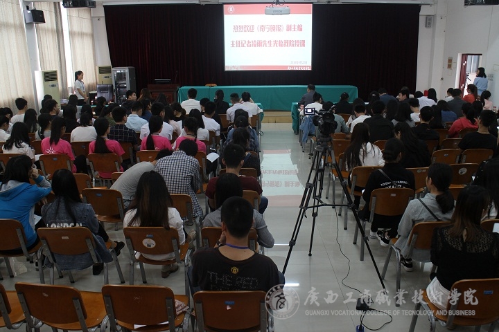 2016年4月22日下午15:00,我院“新聞人”集聚校本部2145報告廳,特邀《南寧晚報》副總編凌雨展開了“我做新聞人”新聞宣傳報道工作人員崗位能力系列講座的第一課。學(xué)院黨委副書記、紀委書記蒙啟成、學(xué)院各部門分管宣傳的領(lǐng)導(dǎo)和宣傳員、黨委宣傳部新聞中心以及學(xué)院各個學(xué)生組織的宣傳代表在現(xiàn)場共同享受了這場新聞盛宴。
