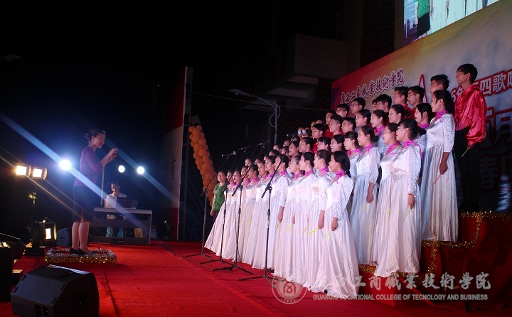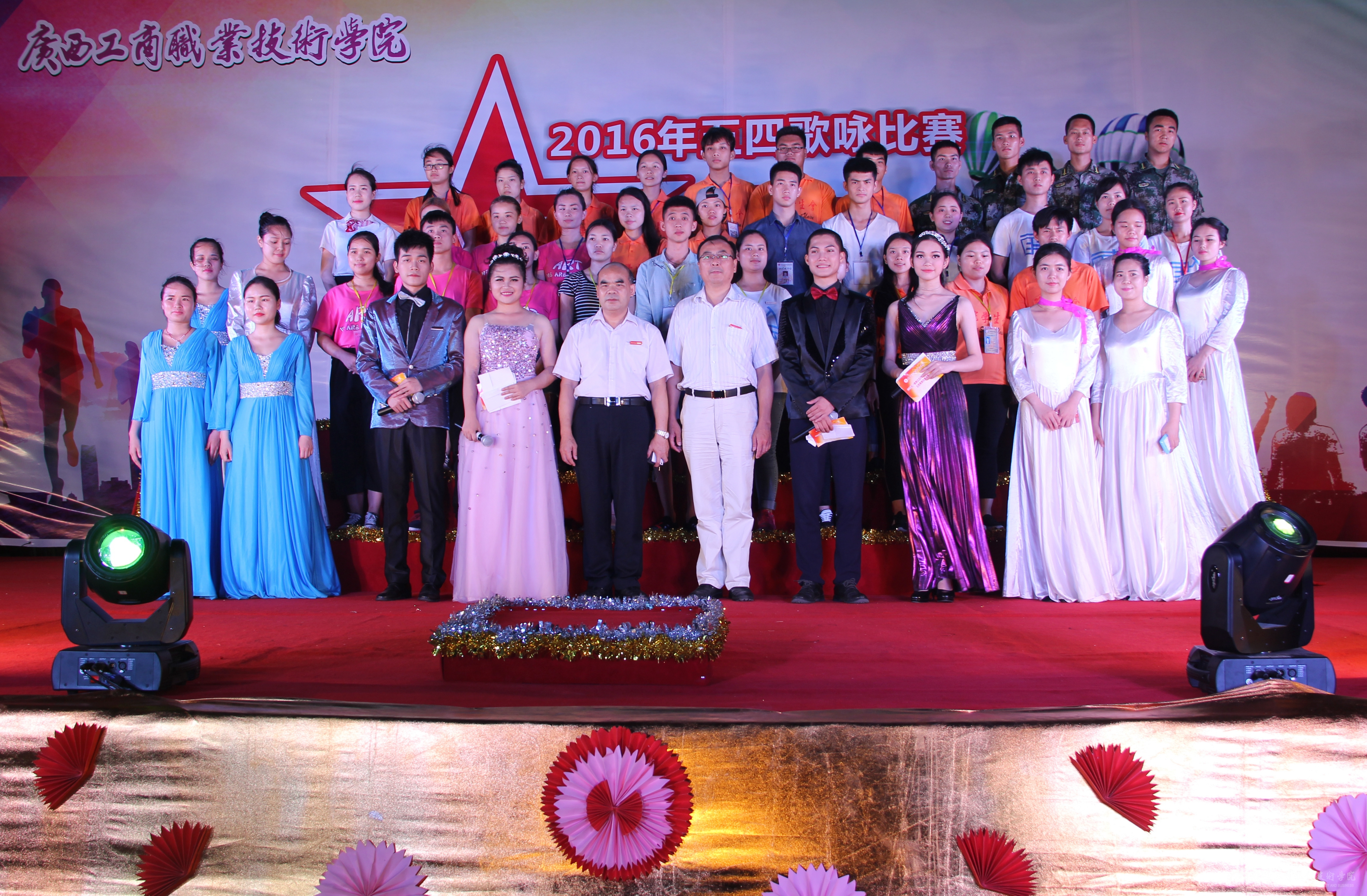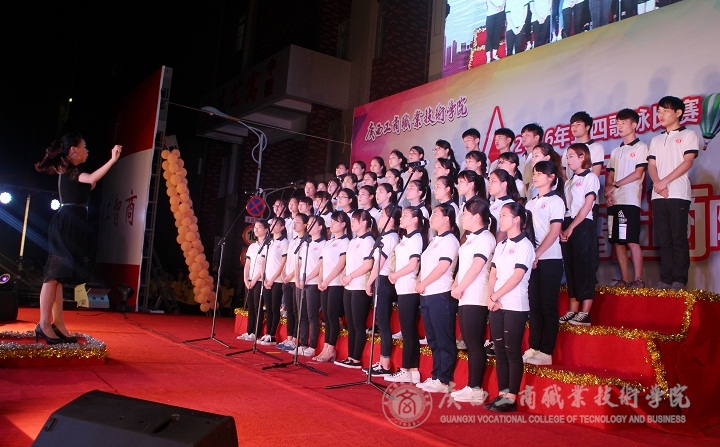 2016年5月6日晚,“唱響五月,青春廣商院”五四歌詠比賽晚會(huì)在我院本部LED大屏幕下隆重舉行。學(xué)院黨委書記覃武云、學(xué)院黨委副書記蒙啟成及學(xué)院辦公室、宣傳部、學(xué)工部、后勤處、各系相關(guān)負(fù)責(zé)人和各系師生出席晚會(huì)。晚會(huì)還特地邀請(qǐng)了外校的音樂(lè)老師黃華、鐘麗娟、徐斌、黃金、張勤來(lái)作為評(píng)委。