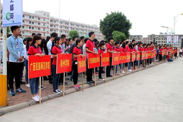 4月25日上午八點,迎著和煦的春風(fēng),2015年廣西職業(yè)院校技能大賽高職組市場營銷技能賽項啟動儀式在廣西工商職業(yè)技術(shù)學(xué)院本部LED大屏幕前隆重舉行。賽項裁判組成員、參賽院校領(lǐng)隊、指導(dǎo)教師,營銷競賽承辦院校領(lǐng)導(dǎo)、營銷技能競賽技術(shù)支持單位代表和參賽選手共100多人參加了啟動儀式。本次賽項由自治區(qū)教育廳主辦,我院承辦。