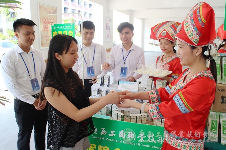現(xiàn)場(chǎng)還有財(cái)信系廣告與設(shè)計(jì)、食品檢測(cè)專業(yè)展出的糧食加工與包裝設(shè)計(jì)作品展。食品檢測(cè)專業(yè)的同學(xué)向大家展示了既營(yíng)養(yǎng)又安全的面包、紅酒、餅干,廣告與設(shè)計(jì)專業(yè)的同學(xué)向大家展示了以五谷雜糧為主要材料的圖畫。尤具特色的是:活動(dòng)中呈現(xiàn)的全部作品都是由學(xué)生們親手制作?,F(xiàn)場(chǎng)接受采訪的同學(xué)告訴記者,同學(xué)們參加此次活動(dòng)是為了響應(yīng)國(guó)家的號(hào)召,展示我院食檢專業(yè)的技能特色,她們表示:廣西區(qū)很多院校的職業(yè)技能展示以及發(fā)展的程度,跟國(guó)際上還有一定的差距,大家決心要繼續(xù)努力,將食檢專業(yè)的技能發(fā)展得更好。