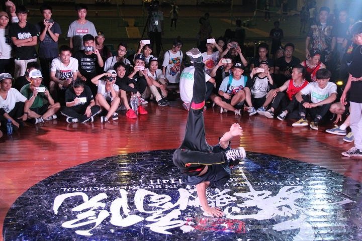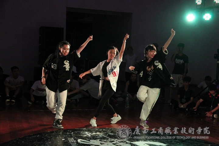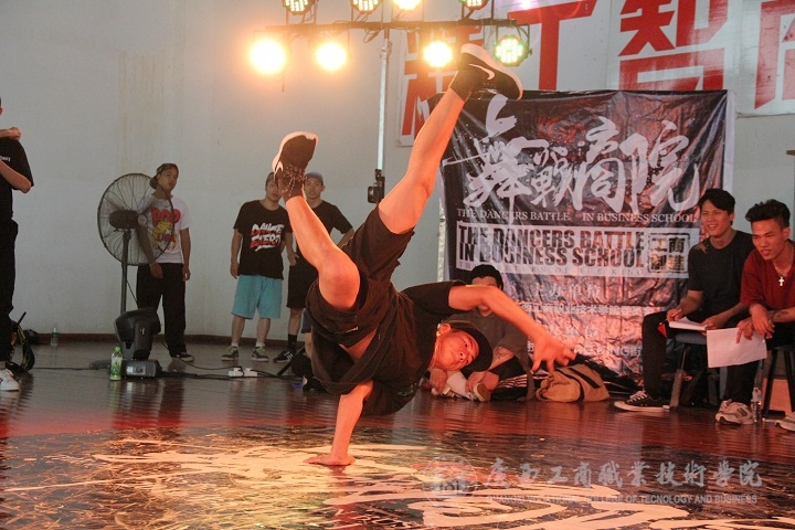 2016年5月14日14:00,我院本部文體館二樓舞臺(tái)上下人頭攢動(dòng)、燈光璀璨,由我院共青團(tuán)委員會(huì)主辦、院街舞社承辦的第二屆“舞戰(zhàn)商院”街舞大賽在此舉行。南寧各大高校街舞社紛紛前來(lái)參賽,并與同學(xué)們一同欣賞了此次比賽。本次大賽共有五個(gè)項(xiàng)目,以斗舞的形式進(jìn)行,分別為:高校嘉賓賽(7 to smoke)、全部舞種賽(freestyle 3V3)、團(tuán)體挑戰(zhàn)賽(breaking 5~7)、單人舞步賽(top rock 1V1)、單人技巧賽(power move 1V1)。
