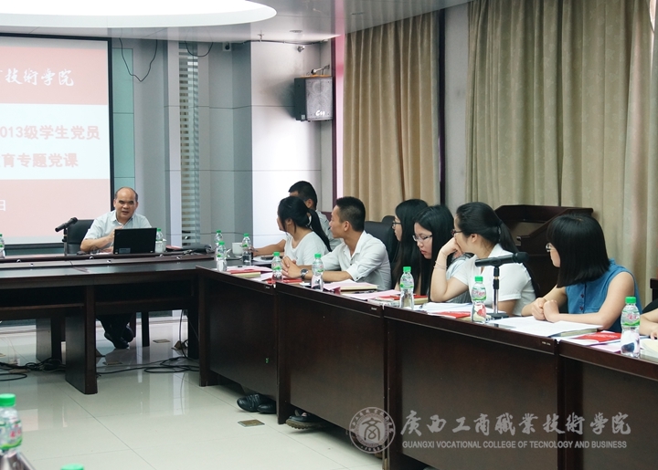 2016年5月7日,學(xué)院黨委書記覃武云同志率黨委組織部、黨委學(xué)工部、各系黨總支領(lǐng)導(dǎo)及黨務(wù)工作者一行7人前往廣西出入境檢驗檢疫局技術(shù)中心,與我院在該單位及其他在南寧市預(yù)就業(yè)的2013級學(xué)生黨員開展“兩學(xué)一做”學(xué)習(xí)教育專題黨課學(xué)習(xí),并進(jìn)行“講政治、有信念”專題學(xué)習(xí)討論。