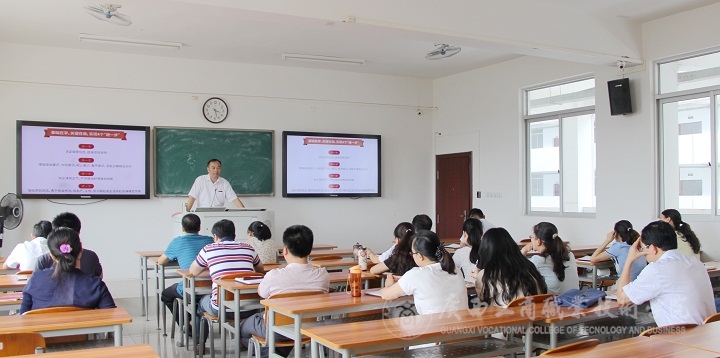 2016年6月3日下午,學(xué)院黨委副書記、紀(jì)委書記蒙啟成同志在我院校本部2207教室為黨員同志們上 “兩學(xué)一做”黨課。本次黨課主要圍繞深入學(xué)習(xí)、貫徹落實(shí)“兩學(xué)一做”展開。
