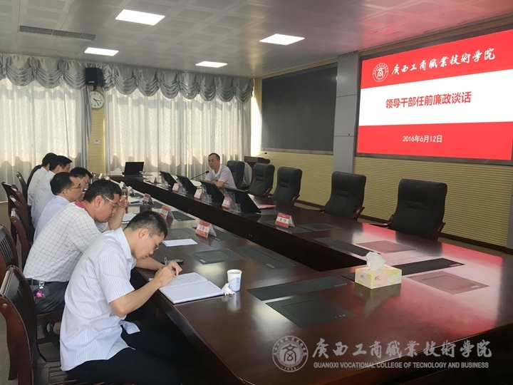 2016年6月12日下午,學(xué)院黨委副書記、紀委書記蒙啟成同志對6位新調(diào)整工作崗位的處級干部做任前廉政談話。會上,蒙啟成對6位處級領(lǐng)導(dǎo)干部提出了四點要求:
