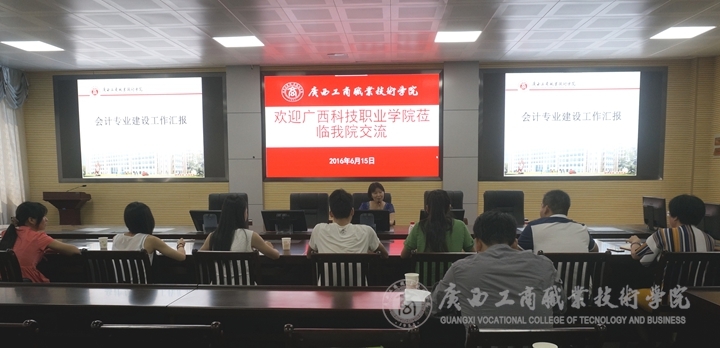 2016年6月15日上午,廣西科技職業(yè)學(xué)院院長助理吳先夏等一行11名教師到我院進(jìn)行交流。學(xué)院領(lǐng)導(dǎo)、會(huì)計(jì)專業(yè)帶頭人、工商企業(yè)管理專業(yè)帶頭人、計(jì)算機(jī)專業(yè)帶頭人、物流專業(yè)帶頭人、各系教學(xué)秘書及教務(wù)科研處相關(guān)人員參加了交流活動(dòng)。