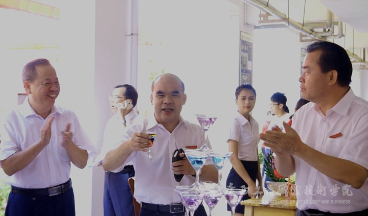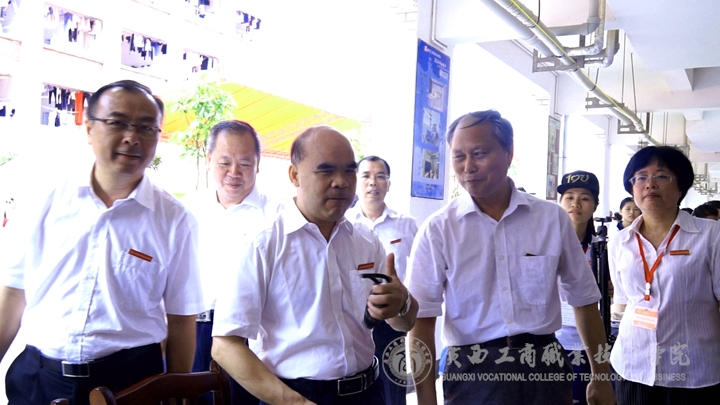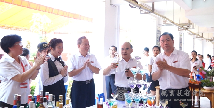 覃武云書(shū)記、陳杰院長(zhǎng)、蒙啟成副書(shū)記、李仕欽副院長(zhǎng)、黃永蓬副廳級(jí)調(diào)研員等一行人先后來(lái)到就業(yè)洽談會(huì)現(xiàn)場(chǎng)、學(xué)生畢業(yè)展演現(xiàn)場(chǎng)、教學(xué)成果展現(xiàn)場(chǎng)與用人單位、參展師生進(jìn)行了親切友好的交談。在學(xué)生的畢業(yè)設(shè)計(jì)展,覃武云書(shū)記豎起了大拇指,為學(xué)生們漂亮的參展作品點(diǎn)贊。在西餐展臺(tái),覃武云書(shū)記舉起學(xué)子們現(xiàn)場(chǎng)調(diào)好的雞尾酒向現(xiàn)場(chǎng)師生問(wèn)好。在板鞋教學(xué)展演現(xiàn)場(chǎng),他甚至調(diào)皮的穿起了板鞋,與其他老師玩起了板鞋游戲。