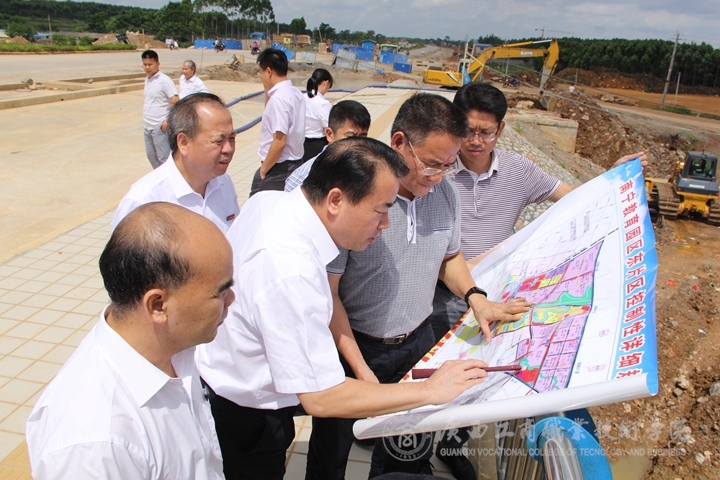 簽約儀式結(jié)束后,武鳴城區(qū)領(lǐng)導(dǎo)陸耀忠同志帶領(lǐng)廣商院簽約代表一行人實(shí)地觀看了廣商院初步確定的位于武鳴東片區(qū)的新校址。