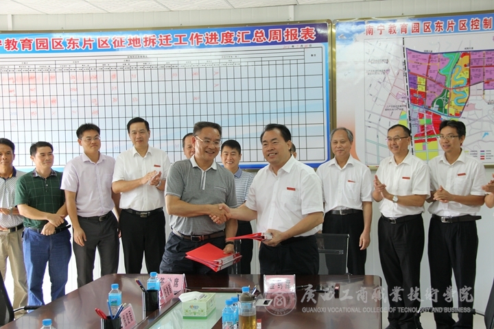 據(jù)悉,廣商院入住南寧教育園區(qū)建設(shè)項(xiàng)目前期工作進(jìn)展順利。5月5日獲得自治區(qū)教育廳《南寧教育園區(qū)學(xué)校入院建議書》,6月23日,南寧教育園區(qū)東片區(qū)指揮部已確定我院新校區(qū)初步選址方案。經(jīng)學(xué)院與武鳴區(qū)人民政府商議,于2016年7月6日正式簽訂《入駐南寧教育園區(qū)武鳴東片區(qū)框架協(xié)議書》,至此,廣商院開啟了在武鳴新校區(qū)建校辦學(xué)的新時(shí)代。