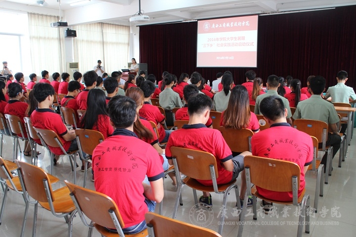 盛炎七月,廣商院有這樣一群滿懷激情的青年學子,將為建設(shè)農(nóng)村貢獻一股強大的青春力量。2016年7月14日11點我院在校本部教學樓2145報告廳舉行“三下鄉(xiāng)社會實踐活動啟動儀式。