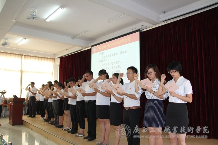 在廣商院這塊充滿希望的教育園田里,教師隊(duì)伍總是不斷注入新鮮的血液。2016年8月26日早上,在我院校本部2145報(bào)告廳舉行了新進(jìn)教師入職宣誓儀式,學(xué)院黨委書記覃武云主持該儀式。