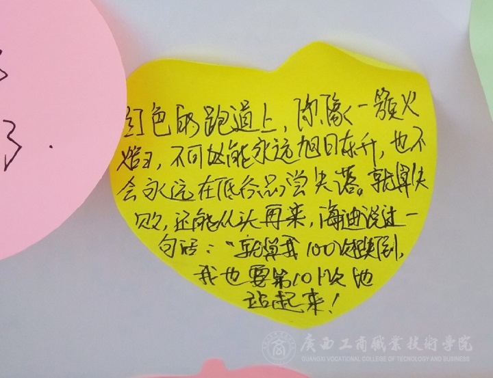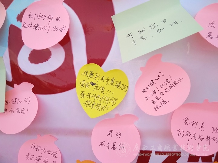 小小一張便利貼,記載著大家的祝愿與希望,在賽場上頑強(qiáng)拼搏,展現(xiàn)自我,用汗水與歡笑澆灌勝利的夢想,用行動成就希望。