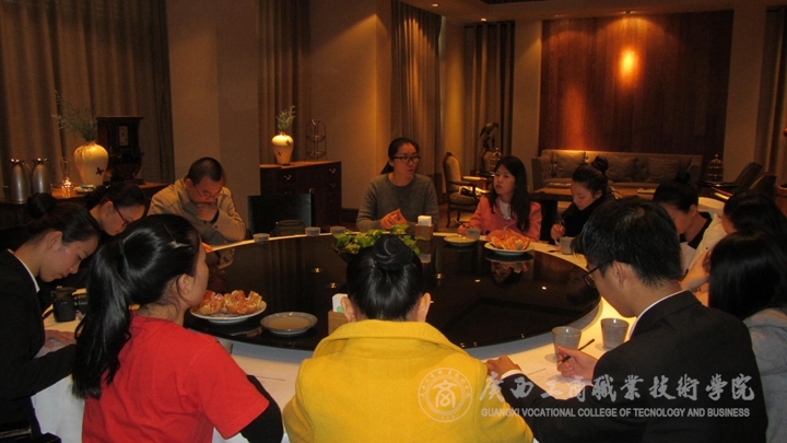 11月2日,在新榮記人力資源部招聘經(jīng)理曲新榮、周璇的帶領(lǐng)和陪同下,工作組來到百子灣“榮小館”店與在北京新榮記餐飲管理有限公司實(shí)習(xí)的其他10名同學(xué)進(jìn)行座談會(huì)。座談會(huì)上同學(xué)們一一向老師匯報(bào)了在北京實(shí)習(xí)3個(gè)月的收獲和體會(huì),盡管在生活上,環(huán)境適應(yīng)上遇到了很多困難,但是實(shí)習(xí)單位團(tuán)結(jié)、和諧的團(tuán)隊(duì)氛圍讓同學(xué)們倍感溫暖,適應(yīng)能力不斷提高。在實(shí)習(xí)崗位上,新榮記的師傅們很熱心、負(fù)責(zé),包容同學(xué)們犯的錯(cuò)誤,承擔(dān)犯錯(cuò)后的責(zé)任,無形中鞭策了同學(xué)們工作的規(guī)范性和準(zhǔn)確性。