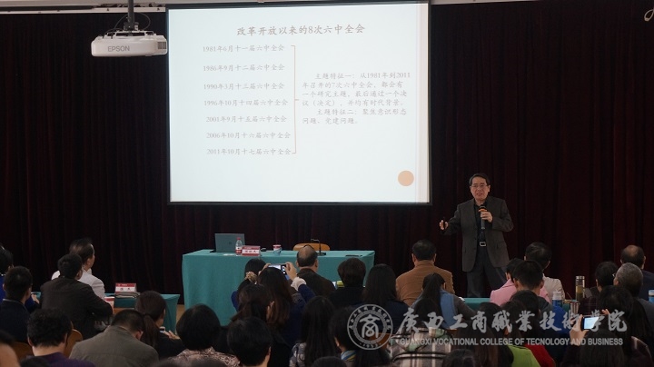? ? ? ? 為全面、準(zhǔn)確、深入學(xué)習(xí)貫徹黨的十八屆六中全會(huì)精神,傳達(dá)自治區(qū)第十一次黨代會(huì)精神,2016年12月20日下午,我院邀請自治區(qū)宣講團(tuán)成員、自治區(qū)黨委黨校副校長、行政學(xué)院副院長陳林杰教授到我院作學(xué)習(xí)貫徹黨的十八屆六中全會(huì)精神宣講報(bào)告。學(xué)校黨委書記覃武云主持報(bào)告會(huì)。