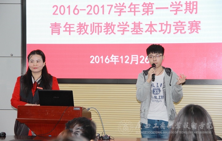 為進(jìn)一步提高青年教師教學(xué)基本技能,促進(jìn)青年教師樹立高職教育理念,磨練教學(xué)內(nèi)功,營造重視教學(xué)、追求卓越的氛圍,2016年12月26日下午,學(xué)院2016-2017學(xué)年第一學(xué)期青年教師教學(xué)基本功決賽在校本部教學(xué)樓2119視頻會議室隆重舉行。