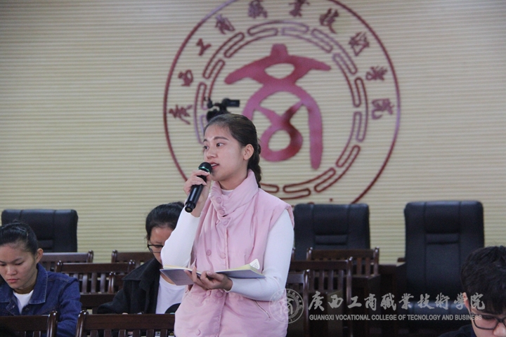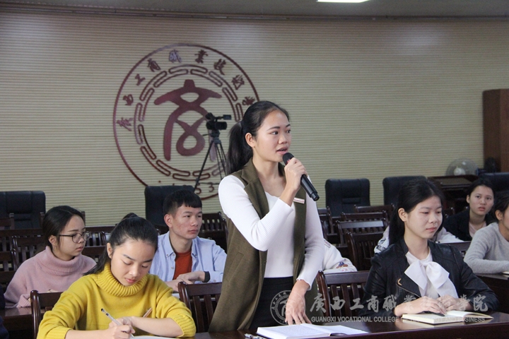 ??????? 隨后,師生代表就學習高校思想政治工作會議精神談了自己的學習體會。社科部黃森曼老師立足本職工作,談了學習習近平總書記講話的體會。她表示,通過學習會議精神,再次深刻感受到思想理論課的重要性;明白了立德樹人是思想政治教育課的立足點,黨的領(lǐng)導(dǎo)是思想理論課的方向,教師的自身素質(zhì)是上好思想政治理論課的基礎(chǔ)。經(jīng)管系學生代表提到,習近平總書記對共青團員干部提出了更高的要求。作為一名共青團干部要高度重視思想政治工作,做到跟黨走,聽黨話,努力提高專業(yè)知識與綜合素質(zhì),勤奮學習,積極工作,吃苦在前,享受在后,在同學中時刻起到先鋒表率的作用。