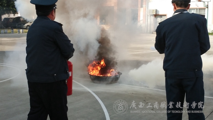 負責學院安全工作后勤管理處(保衛(wèi)處)副處長梁昆同志首先介紹了此次演練的目的在于根據(jù)學院《關于印發(fā)〈廣西工商職業(yè)技術學院安全大檢查工作方案〉的通知》精神,為廣大師生員工創(chuàng)造一個安全、祥和的工作、生活環(huán)境,迎接2017年新年。接著由物業(yè)公司負責人給大家講解了預防火災的相關知識,在實際操作中,點燃了堆放在操場的可燃物,由操作人提著滅火器,將白色的粉末噴向大火,頓時操場上升騰起濃濃的白色煙霧,真實模擬了火災現(xiàn)場,場面很壯觀。最后參加演練的人員在現(xiàn)場嘗試干粉滅火器的使用。