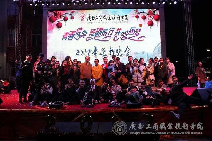 2016年12月29日晚19點(diǎn),廣商院2017年迎新晚會(huì)在校本部LED大屏幕下舉行。本次晚會(huì)以“青春信仰?砥礪前行?共圓中國夢(mèng)”為主題,學(xué)院黨委書記覃武云、黨委副書記、紀(jì)委書記蒙啟成、副院長(zhǎng)李仕欽、副院長(zhǎng)陳寧春出席本場(chǎng)晚會(huì)。各部門各單位負(fù)責(zé)人和我院師生觀看了本場(chǎng)晚會(huì)。