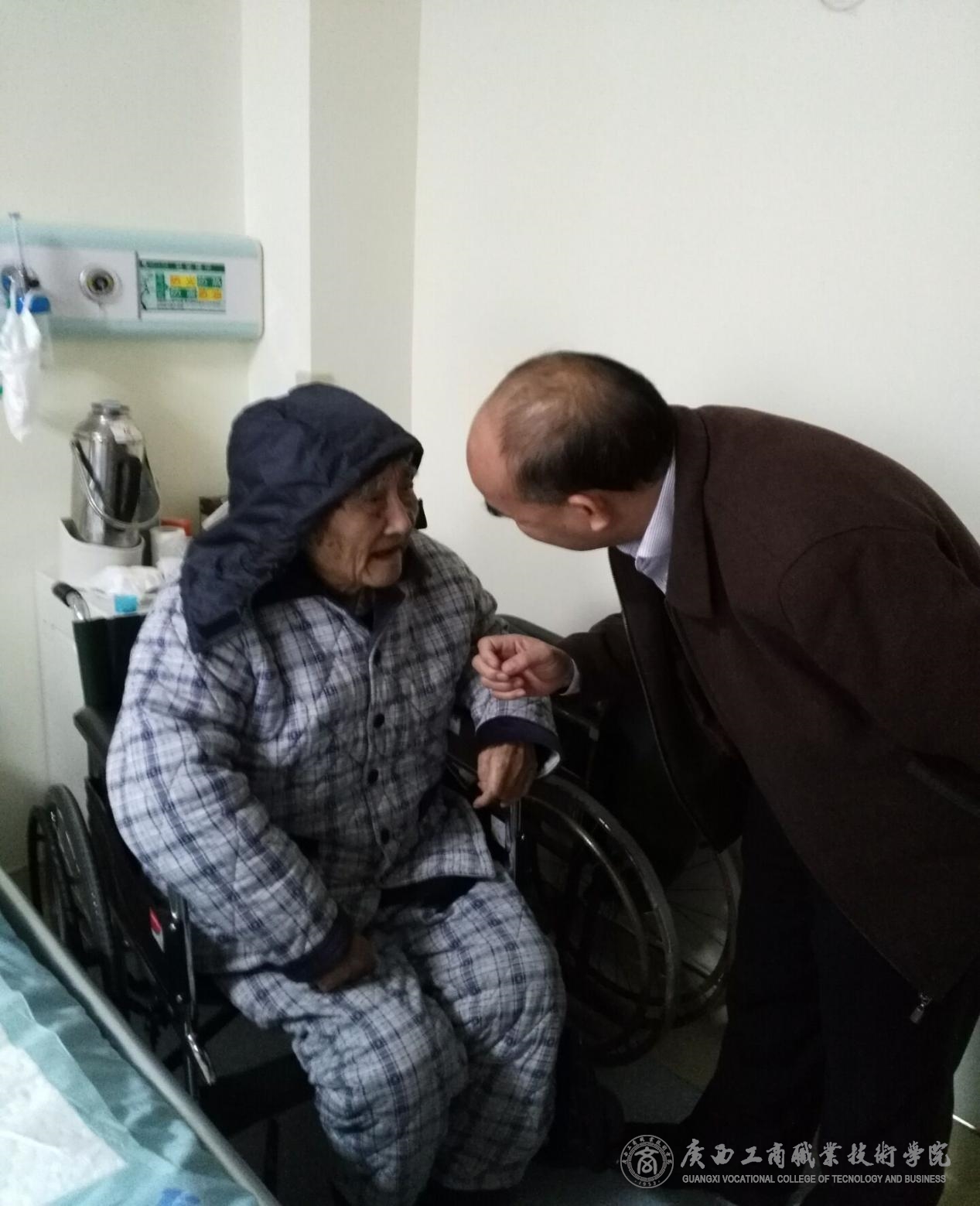 1月18日,自治區(qū)糧食局林愈溪副局長一行在院黨委書記覃武云的陪同下,看望慰問我院離休老教師巫賽英同志。向巫老師表達了新年的問候,祝福巫老師新年快樂、身體健康、全家幸福。