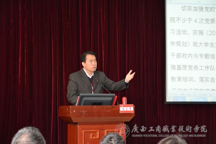 會(huì)議由學(xué)院黨委副書(shū)記、紀(jì)委書(shū)記、工會(huì)主席蒙啟成同志主持,學(xué)院黨委書(shū)記覃武云同志致開(kāi)幕詞。教代會(huì)代表認(rèn)真聽(tīng)取陳杰院長(zhǎng)作的“學(xué)院工作報(bào)告”、工會(huì)主席作的“學(xué)院工會(huì)工作報(bào)告”(書(shū)面)、財(cái)務(wù)處長(zhǎng)作的“學(xué)院財(cái)務(wù)工作報(bào)告”(書(shū)面)、 學(xué)術(shù)委員會(huì)作的“學(xué)院學(xué)術(shù)委員會(huì)工作報(bào)告”(書(shū)面),聽(tīng)取了陳杰院長(zhǎng)作的關(guān)于《廣西工商職業(yè)技術(shù)學(xué)院教師考核評(píng)價(jià)制度改革實(shí)施方案(試行)》和《廣西工商職業(yè)技術(shù)學(xué)院學(xué)術(shù)不端行為查處規(guī)則及處理辦法(試行)》起草說(shuō)明。