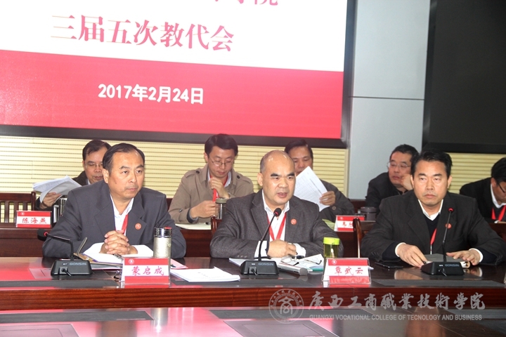 2017年2月24日,我院在校本部報(bào)告廳召開(kāi)學(xué)院三屆五次教代會(huì),學(xué)院黨委書(shū)記覃武云、黨委副書(shū)記、院長(zhǎng)陳杰及學(xué)院領(lǐng)導(dǎo)班子成員、教代會(huì)代表參加了會(huì)議,學(xué)校中層干部、離退休代表列席會(huì)議,全體教職工列席了第一階段會(huì)議。