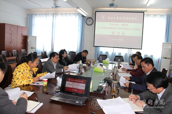 近日,中共中央、國務(wù)院印發(fā)了《關(guān)于加強(qiáng)和改進(jìn)新形勢下高校思想政治工作的意見》,3月2日上午,我院于校本部教學(xué)樓召開《關(guān)于加強(qiáng)和改進(jìn)新形勢下高校思想政治工作的意見》(以下簡稱《意見》)學(xué)習(xí)會。學(xué)院黨委副書記、紀(jì)委書記蒙啟成同志出席并主持學(xué)習(xí)會。學(xué)院辦公室、組織部、工會、宣傳部、教務(wù)處、學(xué)工部、團(tuán)委、社科部的相關(guān)負(fù)責(zé)同志參加會議。