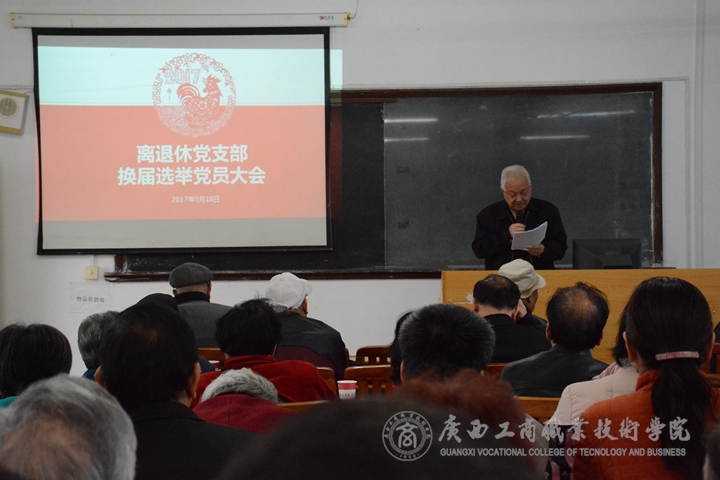 為進(jìn)一步加強(qiáng)學(xué)院離退休黨支部建設(shè),促進(jìn)離退休黨支部黨務(wù)工作順利開展,3月18日上午,離退休黨支部在學(xué)院東校區(qū)2教202教室召開離退休支部“兩學(xué)一做”專題組織生活會(huì)暨換屆選舉黨員大會(huì),會(huì)議組織離退休黨員開展組織生活會(huì),對(duì)全體離退休黨員進(jìn)行民主評(píng)議,并順利開展了支部換屆選舉。離退休黨員共50人出席了大會(huì)。學(xué)院黨委副書記、紀(jì)委書記蒙啟成,黨委組織部部長(zhǎng)蔣百平列席了會(huì)議。
