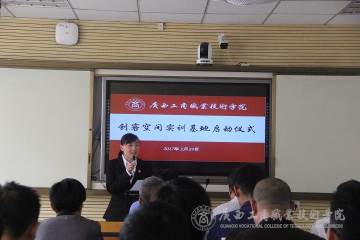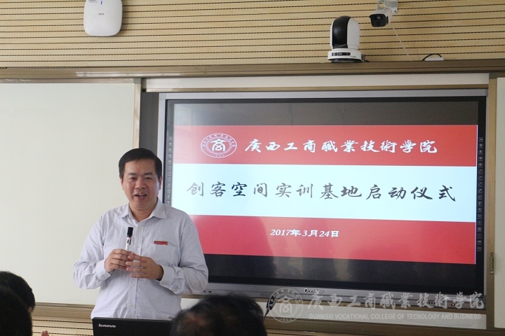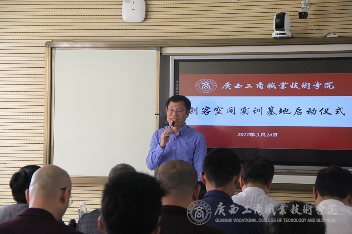 2017年3月24日上午9時(shí),廣西工商職業(yè)技術(shù)學(xué)院創(chuàng)客空間實(shí)訓(xùn)基地在校本部隆重啟動(dòng)。廣西國際電子商務(wù)中心副主任張學(xué)青、廣西壯族自治區(qū)就業(yè)局創(chuàng)業(yè)指導(dǎo)科副科長騰幸宇、廣西電子商務(wù)行業(yè)指導(dǎo)委員會主任委員、廣西電子商務(wù)協(xié)會會長黃光強(qiáng)、廣西農(nóng)小二農(nóng)業(yè)科技有限公司總經(jīng)理江洪建以及20余家企業(yè)代表、部分新聞媒體代表、兄弟院校領(lǐng)導(dǎo)和專家應(yīng)邀參加啟動(dòng)儀式;學(xué)院副院長李維率教務(wù)處副處長蘇波、學(xué)院團(tuán)委副書記趙婷、財(cái)信系有關(guān)負(fù)責(zé)人以及電商教研室全體教師參加本次啟動(dòng)儀式。啟動(dòng)儀式由財(cái)信系覃遠(yuǎn)霞主任主持。