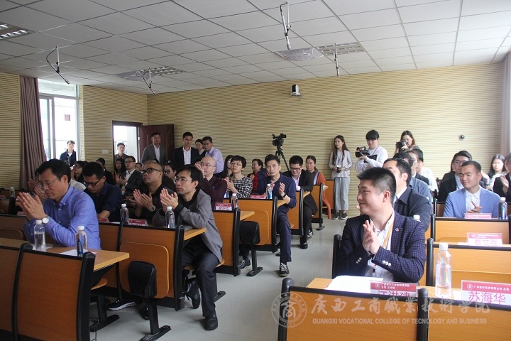 會議結(jié)束后,與會嘉賓在創(chuàng)客空間實(shí)訓(xùn)基地舉行揭牌儀式,創(chuàng)客班的同學(xué)帶領(lǐng)嘉賓們實(shí)地參觀,廣西工商職業(yè)技術(shù)學(xué)院創(chuàng)客空間實(shí)訓(xùn)基地啟動(dòng)儀式圓滿結(jié)束。