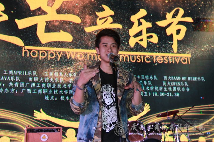 隨后,工商“稻草人”樂隊、農(nóng)職“DREAM PARK”樂隊、工商“April樂隊”、南職“LEVE”樂隊、建院“33號”樂隊、“這里有音樂”工作室、工商“8341”樂隊、民大“Eden”樂隊,西大“迷盒”樂隊……11支樂隊輪番上陣,掀起陣陣熱潮。各種音樂或激情澎湃、或活力四射、或溫柔似水,各樂隊的主唱們積極與場下觀眾互動,也一步步把音樂會推向了高潮。