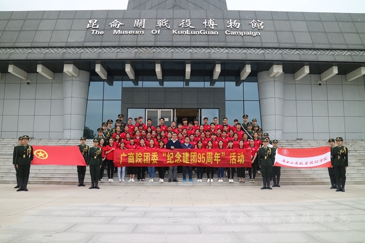 ??????? 為隆重紀(jì)念中國(guó)共產(chǎn)主義青年團(tuán)建團(tuán)95周年,積極響應(yīng)團(tuán)中央和團(tuán)區(qū)委關(guān)于“學(xué)習(xí)習(xí)近平總書記講話 做合格共青團(tuán)員”教育實(shí)踐要求,4月23日,我院團(tuán)委組織“鑄英計(jì)劃”第一期團(tuán)學(xué)骨干、院級(jí)學(xué)生組織主要成員和各系學(xué)生骨干等85余名同學(xué),前往昆侖關(guān)戰(zhàn)役舊址開展主題教育實(shí)踐活動(dòng),此次活動(dòng)由院團(tuán)委蒙曉旺老師帶隊(duì)。