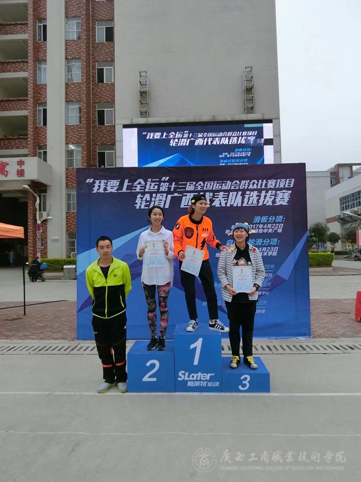 比賽結(jié)束后,主持人為獲獎?wù)哌M行簽約、頒獎。值得一提的是,我校13級學(xué)生李欣遙,14級學(xué)生李蓉榮分別獲得第十三屆全運會廣西代表隊選拔賽速度過樁第一名和第三名,代表廣西隊出征2017年第十三屆全運會。本次比賽取得圓滿成功!