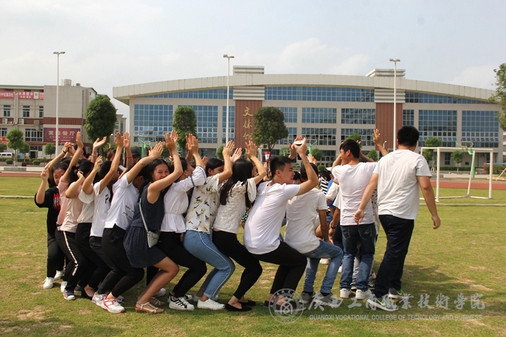 第二個項目“圍圈坐腿”考團隊協(xié)作和持久性,規(guī)則為:所有成員面向順(或逆)時針方向,圍成圓圈,逐一坐在后一位成員腿上,都坐好以后,拍手并高呼“會計**班,我們最棒”堅持最久的班級獲勝。參與活動的每個班集體都團結(jié)一致,認真的體現(xiàn)團隊精神,團隊中的每一個人都充分貢獻自己的力量,不存在任何偷懶的現(xiàn)象。
