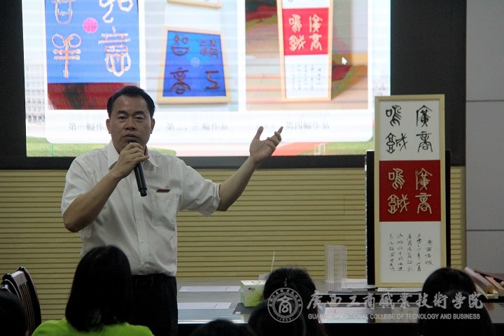 2017年6月13日下午,我院院長陳杰教授在校本部教學(xué)樓會議室與廣商院師生共同進(jìn)行書法變革與藤瓷書藝探索,并給大家?guī)硪粓鼍识?dú)具創(chuàng)意的文化盛宴。