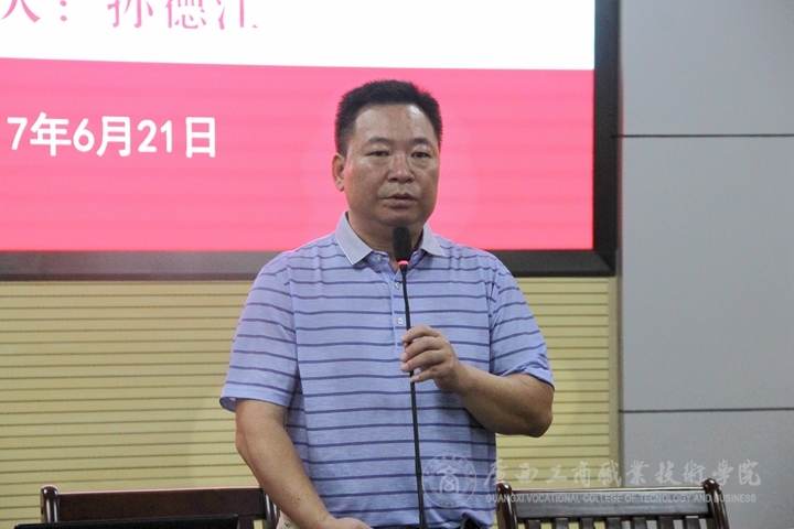 ? ? ? ? 2017年6月21日下午,我院在學(xué)院會(huì)議室開展了實(shí)習(xí)生黨員專題黨課活動(dòng)。本次黨課由學(xué)院黨委學(xué)工部部長(zhǎng)孫德江主講,由經(jīng)管系黨總支書記莫春華主持。各系黨支部代表、在南寧實(shí)習(xí)的學(xué)生黨員、學(xué)院15、16級(jí)的入黨積極分子參加了此次黨課。