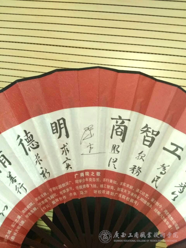 據(jù)了解,廣商院文化扇是母校贈與每一位畢業(yè)生的禮物,上面凝聚了?;?、校風、校訓、校歌,其題字由學生書寫并遴選勝出,每年一換。