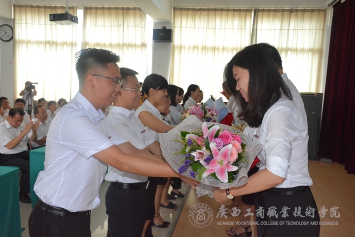 ? ? ? ? 第二項議程是舉行2017年上半年導(dǎo)師授證儀式。儀式上,陳杰同志與導(dǎo)師們握手并頒發(fā)聘書。青年教師給導(dǎo)師獻花行鞠躬禮,教師表示感謝,合影留念。