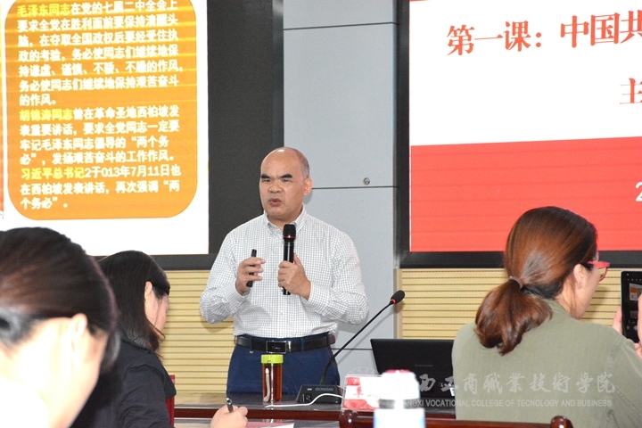 ? ? ? ? 最后,覃武云結(jié)合我們建黨和建國(guó)所取得的理論成果,提出幾點(diǎn)思考,即我們共產(chǎn)黨員要在不斷趕考中,增強(qiáng)“四個(gè)自信”,道路自信、理論自信、制度自信、文化自信、樹(shù)立正確“三觀”的世界觀、人生觀、價(jià)值觀。