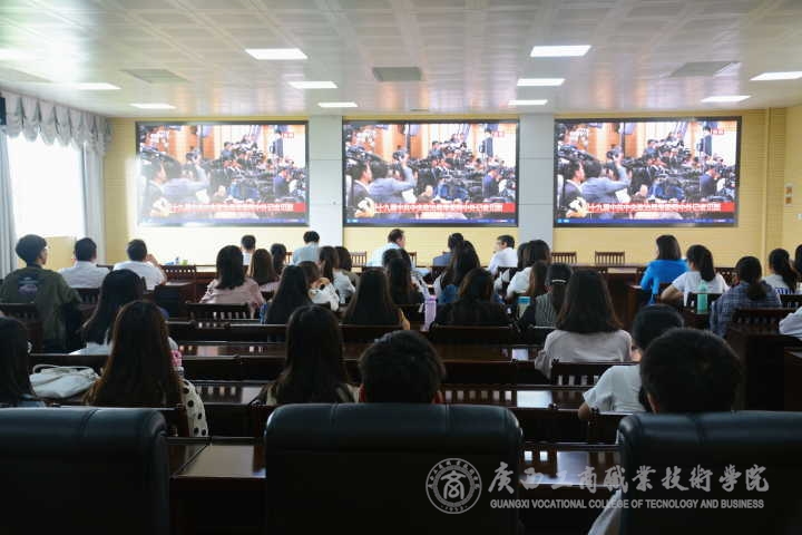(我院師生在報(bào)告廳收看見(jiàn)面會(huì))