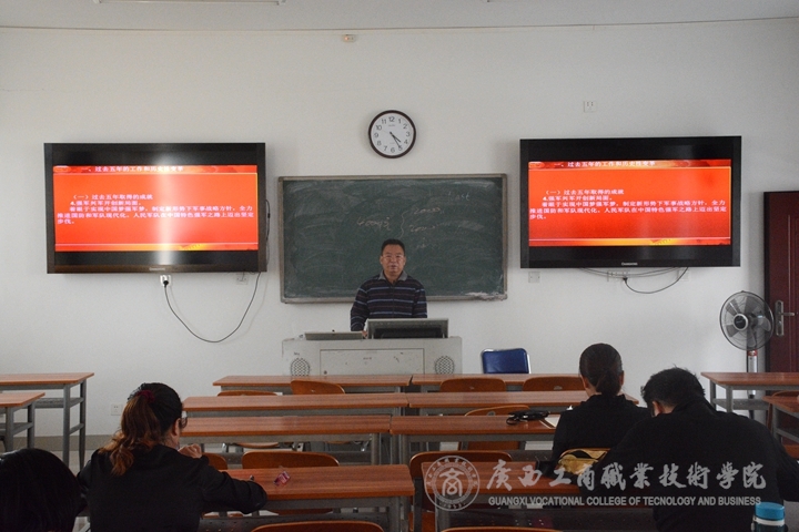 ? ? ? ? 10月18日和25日黨的十九大召開和中央政治局常委與記者見面會的當(dāng)天,學(xué)校組織師生在報告廳、教室、餐廳等場所收看現(xiàn)場直播,親耳聆聽習(xí)近平總書記的報告和講話。11月1日,學(xué)院黨委召開十九大精神學(xué)習(xí)會,黨委書記、院長和學(xué)院領(lǐng)導(dǎo)帶頭學(xué)、帶頭談體會。黨委書記覃武云說,偉大思想源于偉大擔(dān)當(dāng)、偉大實(shí)踐和人民群眾的高度認(rèn)可,黨的十九大報告是我們黨邁進(jìn)新時代、開啟新征程的政治宣言,是舉旗定向、謀篇布局的奮斗綱領(lǐng),習(xí)近平新時代中國特色社會主義思想是凝神聚力、興黨強(qiáng)國的行動指南,全校要全面準(zhǔn)確地學(xué)習(xí)領(lǐng)會黨的十九大精神,要堅(jiān)持立德樹人,全面實(shí)現(xiàn)我院教育事業(yè)內(nèi)涵式發(fā)展。
